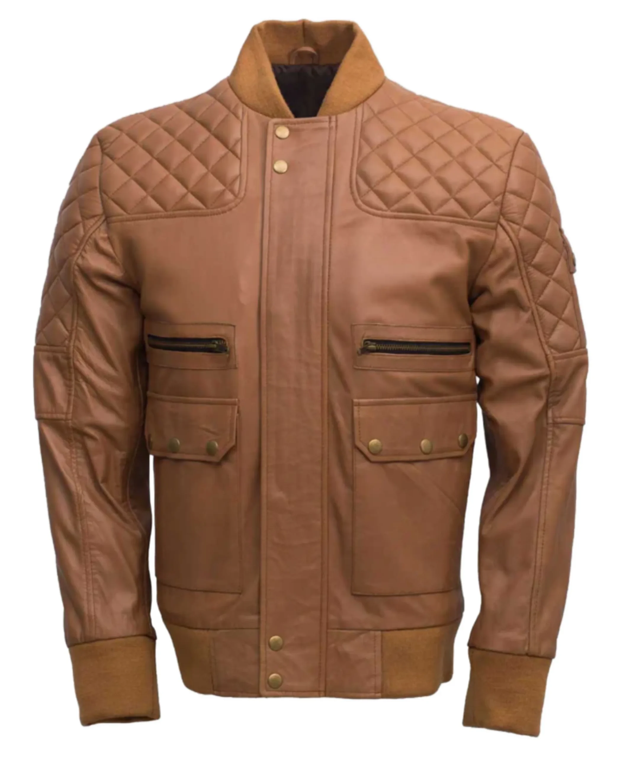 Shop The Men’s Brown Quilted Bomber Leather Jacket