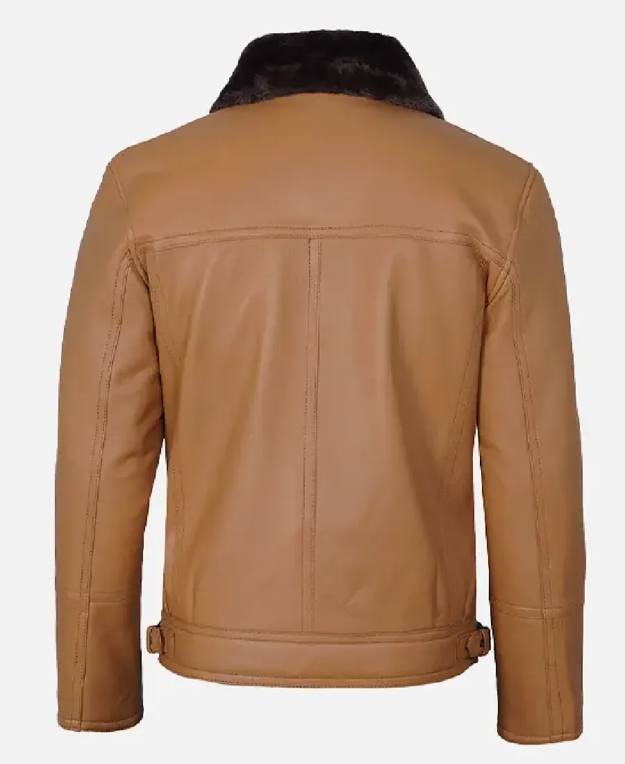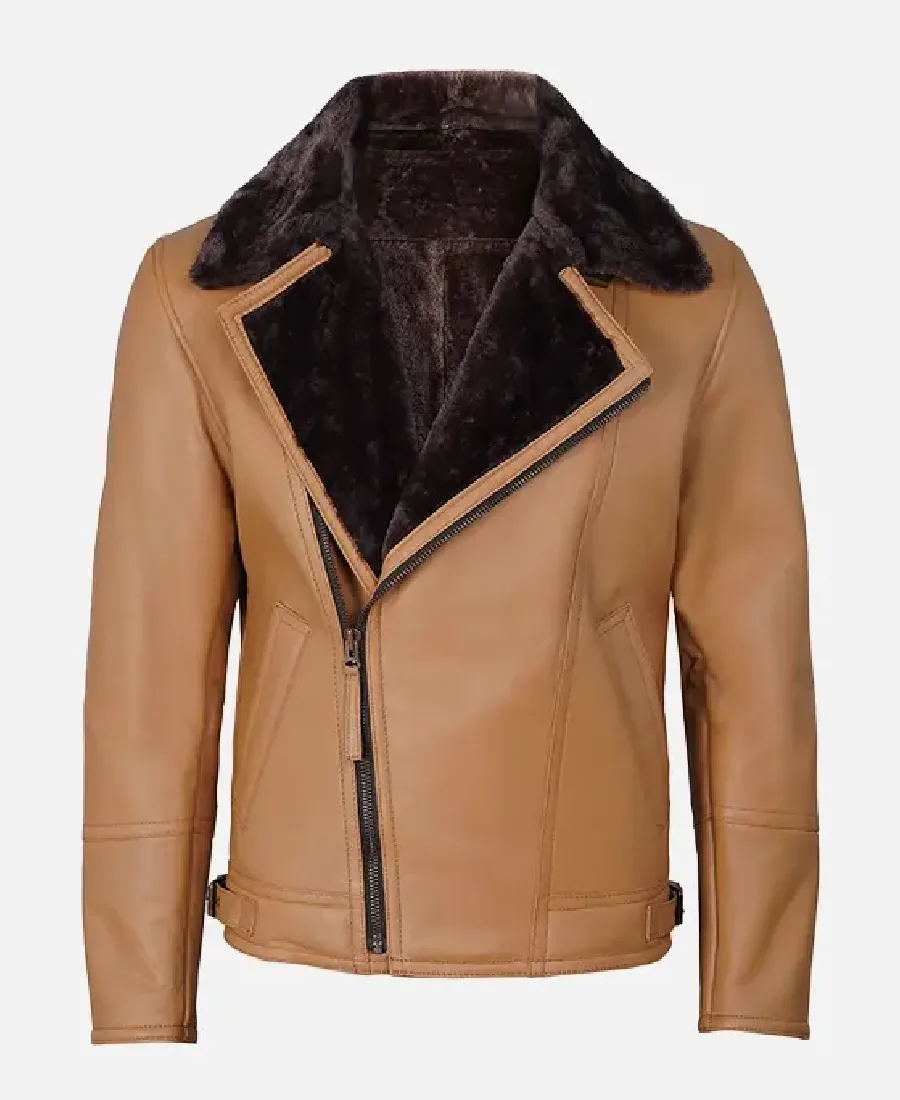 Men’s Camel Shearling Biker Leather Jacket