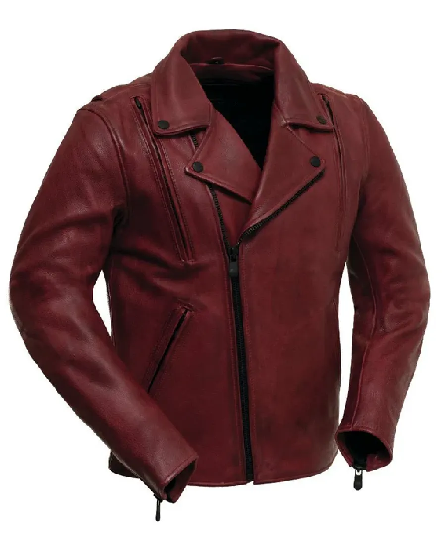 Shop The Men’s Thrill Biker Maroon Leather Jacket