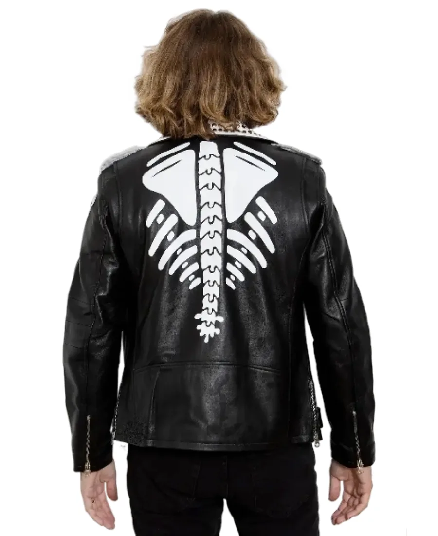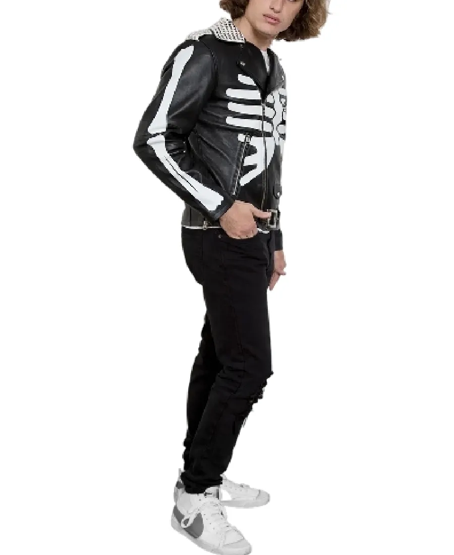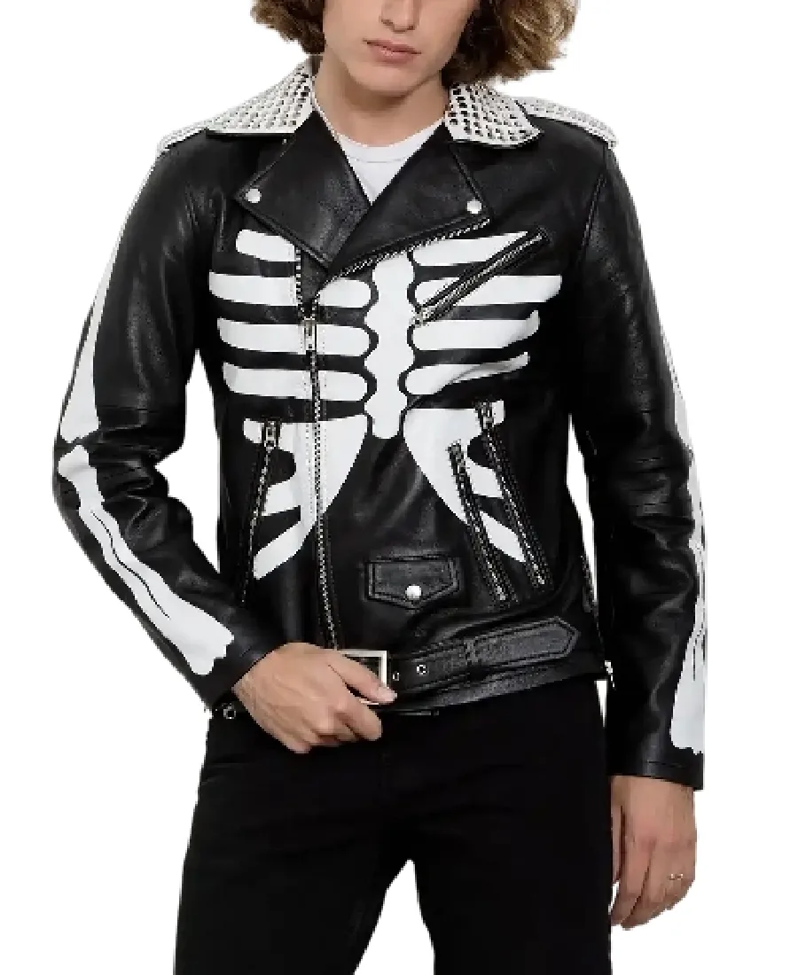 Men’s White Skeleton Biker Leather Jacket